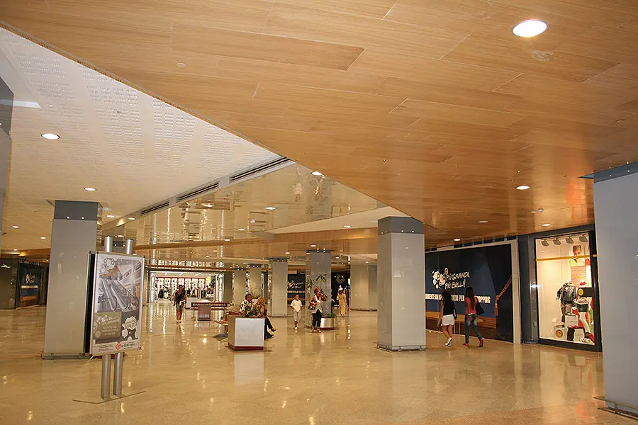 Nel Centro Commerciale Romanina, materiali pregiati e soluzioni su misura definiscono un ambiente elegante e funzionale. Il controsoffitto in MDF laminato, combinato con cartongesso forato e pilastri in vetro satinato, crea un equilibrio tra estetica, comfort acustico e luminosità. Un progetto che unisce design e qualità per un’esperienza commerciale raffinata e accogliente.